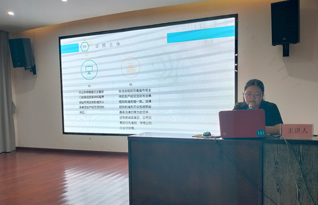 汪蕓是受理中心骨干成員之一,她工作認(rèn)真、待人熱情。主要負(fù)責(zé)企業(yè)工商注冊、信息變更、注銷等業(yè)務(wù)辦理。此次分享她結(jié)合日常工作積累和經(jīng)驗,從證照主體、公司名稱、注冊資本、經(jīng)營范圍等幾個方面進(jìn)行詳細(xì)介紹,并指出注意事項,使參與分享人員對“企業(yè)證照”的相關(guān)事項有了更直接、深入的了解,最后中心副主任汪銘作了點評,并就企業(yè)注冊資本與法律責(zé)任的關(guān)系作了補(bǔ)充,使分享的內(nèi)容更加全面。