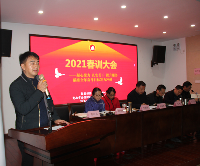 2021年2月26日,中心召開2021年度全體職工春訓大會,會議首先對2020年度優(yōu)秀班組和個人進行表彰,以鼓勵他們在企業(yè)服務、中心發(fā)展方面做出的巨大貢獻。財稅服務二組、項目發(fā)展部獲得“優(yōu)秀班組獎”,李霞娟、曾笑青獲得“優(yōu)秀經(jīng)理(組長)獎”,楊鳳琴、胡武星、柯淼、王衛(wèi)兵、李思凱等5人獲得“優(yōu)秀員工獎”。中心主任胡海鋒、副主任汪銘為優(yōu)秀班組和個人頒發(fā)獎狀和獎金。