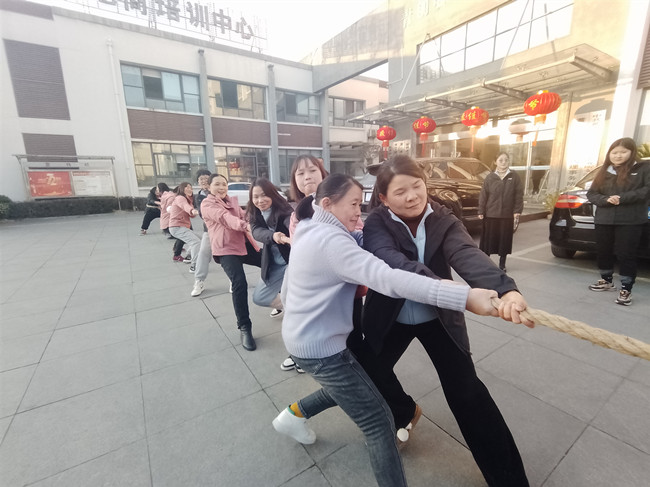 乒乓球健將王衛(wèi)兵和李思凱正戰(zhàn)斗尤酣;廣場(chǎng)上傳來啦啦隊(duì)的呼喊,部門之間的拔河已經(jīng)開始。你看,隨著裁判李霞娟一聲令下,中心主任胡海鋒力拔山兮,凌霄靠后壓陣,楊鳳琴、曾笑青等組成的女隊(duì)也不甘示弱,在啦啦隊(duì)的加油聲中,競(jìng)爭(zhēng)異常激烈,給日常的工作增添了許多趣味。